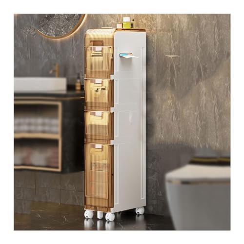 2/3/4-vånings mångsidigt slimmad förvaringsskåp för badrum, flyttbart smalt förvaringsskåp, vattentätt förvaringsskåp i plast med genomskinliga lådor och hjul för små utrymmen, badrum, kök