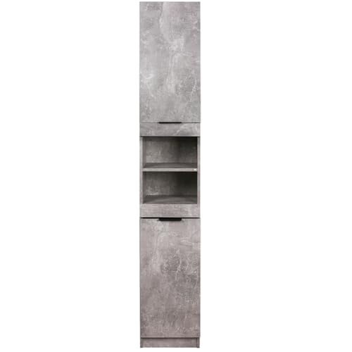 Shally Dogan Rymdbesparande högpelarskåp 2 dörrar och 2 hyllor, fristående smalt skåp, multifunktionell förvaringsskåp, vardagsrum, badrum, kök, bokhylla, kontor (cement)