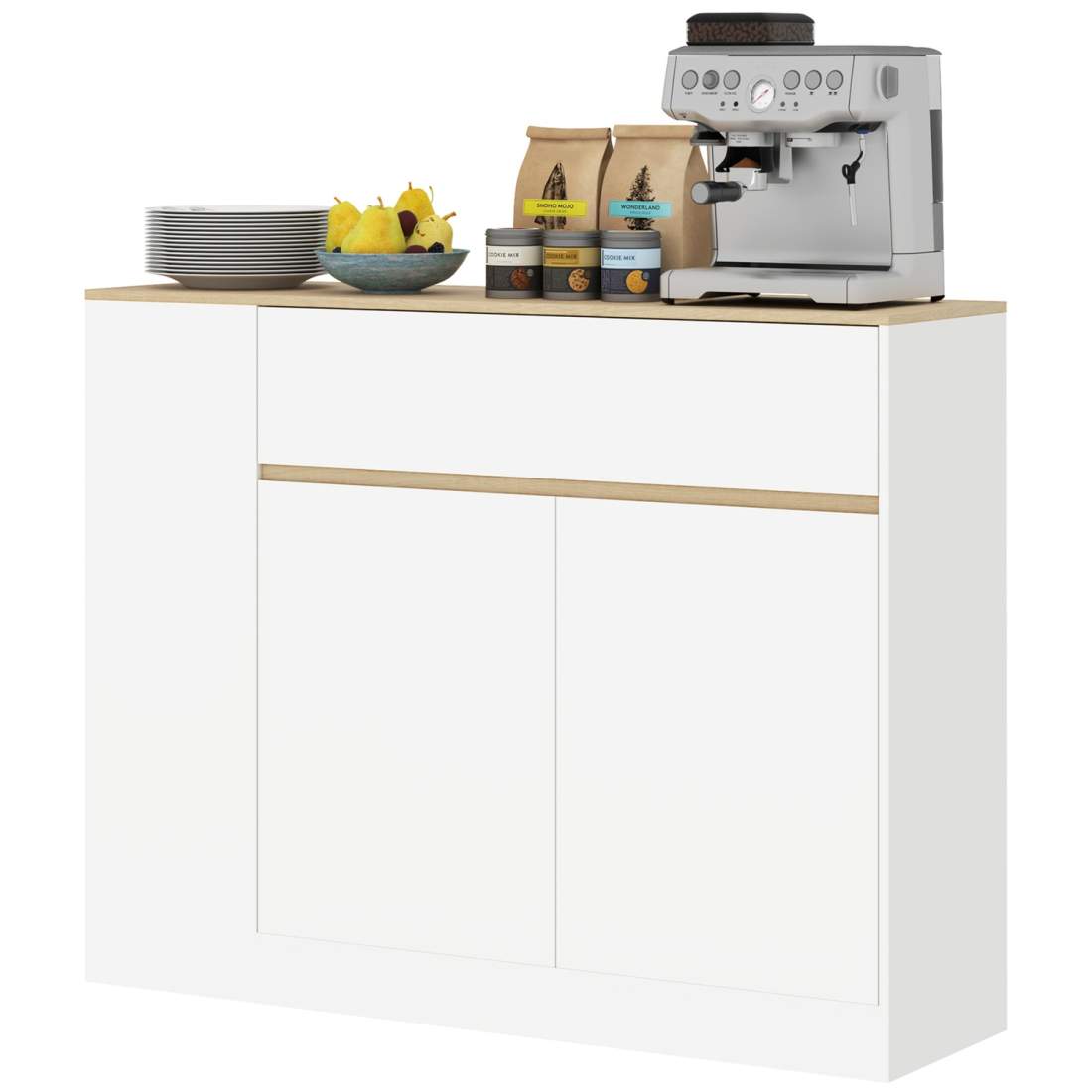 Skänk, köksskåp med låda, ställbar hylla, förvaringsskåp med tippskydd, sidoskåp för kök, matsal, 105 x 30 x 81,5 cm vit
