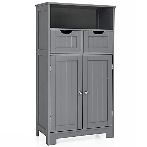 COSTWAY badrumsskåp, med 2 lådor, öppet fack och justerbar hylla, badrumsskåp, högskåp, trä, badrumsbyrå, förvaringsskåp för badrum, kök, vardagsrum (grå)