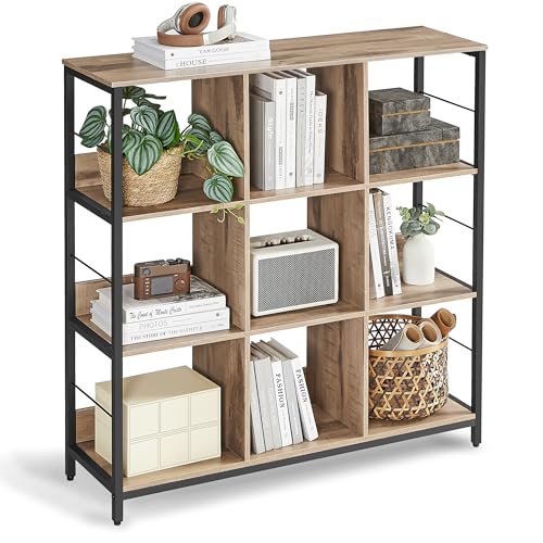 VASAGLE Förvaringsskåp 3 nivåer, förvaringshylla, bibliotek industriell stil, 9 kuber, för vardagsrum, kontor, entré, kök, 30 x 100 x 103,1 cm, kamelbrun och bläcksvart LLS112B50