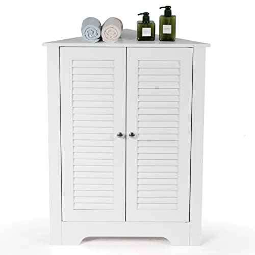 COSTWAY badrumsskåp, hörn, hörnskåp badrum med 2 lamelldörrar, badrumsskåp, underskåp, trä, förvaringsskåp för badrum, kök, vardagsrum, 45 x 45 x 81,5 cm, vit