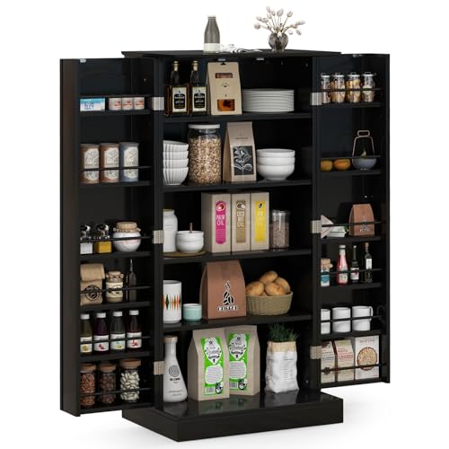 KOMFOTTEU Högskåp bufféskåp 180 cm, köksskåp med & kabelhål, universalskåp med 4 justerbara hyllor, 3 skåp, förvaringsskåp för kök matsal (svart)