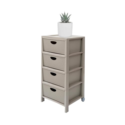 Avilia Förvaringsskåp med 4 lådor gråbrun – byrå för badrum, kontor och kök, platsbesparande med hjul, av polypropen, 39,5 x 38 x 82 cm