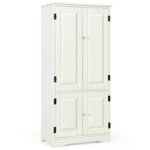 Costway Universalskåp i vintagestil, hallskåp med justerbar hylla, badrumsskåp, tvättskåp, träskåp, förvaringsskåp, rustik stil, för kök/vardagsrum/sovrum, maxvikt 60 kg, vit