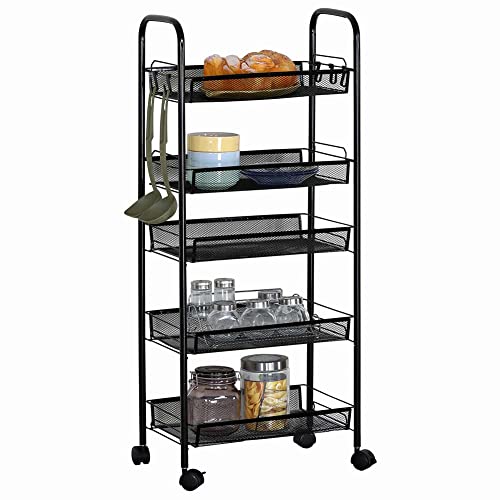 BAKAJI Vagn Multipurpose Vagn Skåp Förvaringsskåp Smal Bekväm Tunn Platsräddare Kök Badrum Kontor Inredning Förvaringslåda Design Färg Svart (5 hyllor)