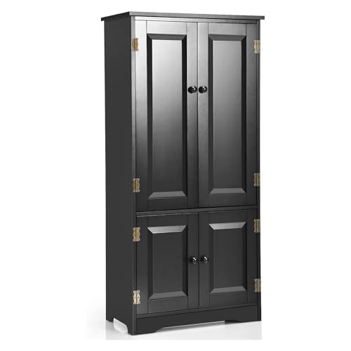 COSTWAY Köksskåp trä, högskåp med glasdörrar, fristående, multifunktionsskåp med tippskydd, förvaringsskåp för kök matsal vardagsrum, 60 x 31,5 x 161,5 cm (svart)