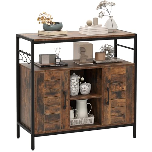 COSTWAY Skänk trä, köksskåp med 3 krokar, byrå med 2 dörrar, öppna fack, justerbara hyllor, förvaringsskåp för kök, matsal, vardagsrum, industriell stil