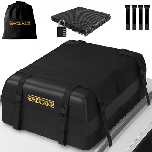 GADLANE Biltakväska 15 kubikfot vattentät takbox för bilar med/utan takräcke, halkfri matta, 4 robusta dörrkrokar, kombinationslås, förvaringsväska, hållbart 820D-material