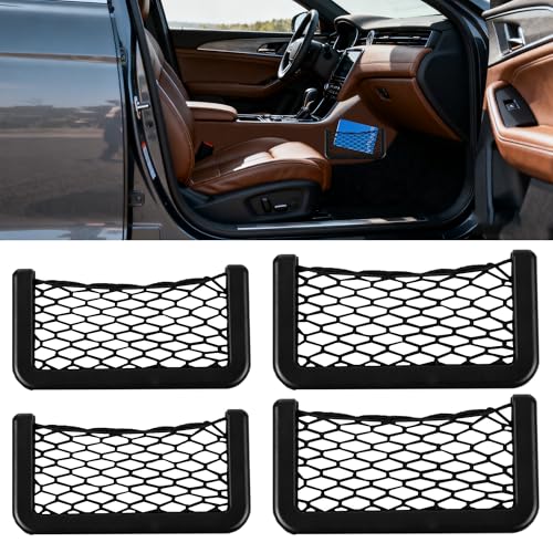 JIAMIAN 4 st Svart Förvaringsnätväska Bil Förvaringsficka, 3M Självhäftande, Bil Bagageutrymme Förvaringsväska, Bilförvaringsnät Med Plastram För Bil Husbil Båt