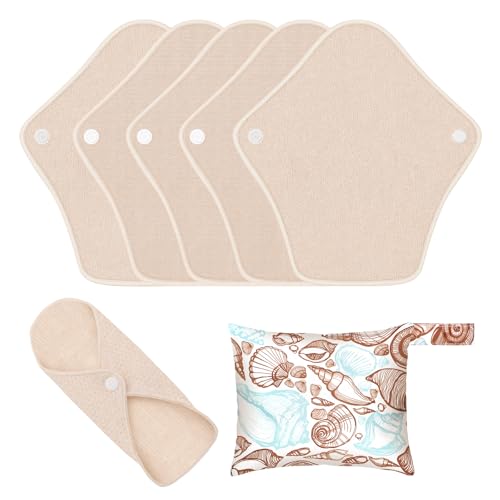 Tvättbara sanitära dynor set, 5 st återanvändbar sanitetsservett, menstruationsdynor för flickor/kvinnor, läckagesäker, tvättbar, mjuk, absorberande - intim uppsättning med 1 vattentät förvaringsväska