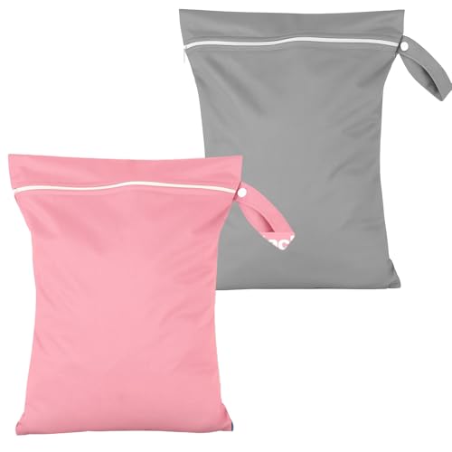 2-pack våt tvättpåse resetvättpåse återanvändbar vattentät förvaringsväska med dragkedja, perfekt för resor, simblöjor och mycket mer (grå/rosa 30 x 40 cm)