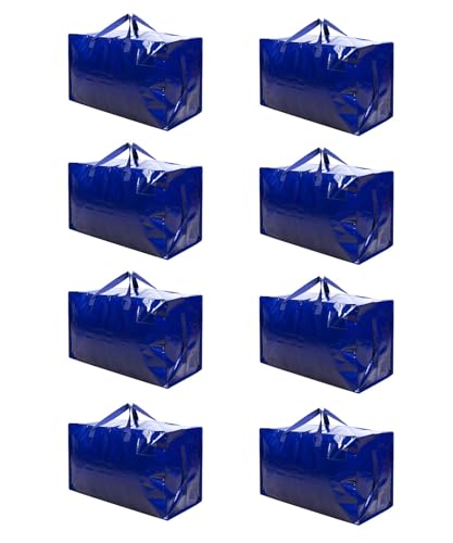 VENO 8-pack kraftig överdimensionerad stor förvaringsväska organiserare med dragkedja och etikettficka för flyttning, klädförvaring, tvättväska, packning, hustillbehör, hållbar, vattentålig (blå,