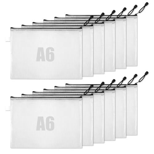LANAFAY 12 st dokumentficka med dragkedja i A6, vattentät förvaringsväska, PVC-plastpåse med dragkedja, transparent nätficka med dragkedja, för resor, kosmetika, kontorsorganisation