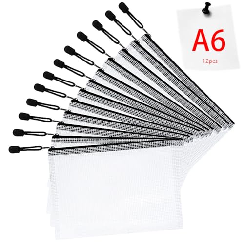 Vicloon Plastplånböcker, 12 st A6 blixtlås låspåsar, nät dokumentplånbok dokumentmappar plastfickor dragkedja fil plånbok för skola kontor läxor resa förvaringsväska (svart dragkedja)