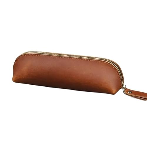 JMORCO Pennställ äkta läder pennväska enkel brevpappershållare handgjord pennfodral förvaringsväska dragkedja pennväska skolmaterial (brunbrun)