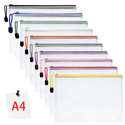 Vicloon Plastplånböcker, 10 st A4 blixtlås låspåsar, nät dokumentplånbok dokumentmappar plastfickor dragkedja fil plånbok för skola kontor läxor resa förvaringsväska (färg: dragkedja)