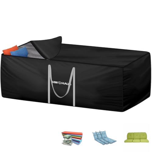 SIMPHAUS Stort skyddsöverdrag för trädgårdskuddar, utemöbler kudde förvaringsväska med dragkedja och handtag, vattentät 420D Oxford tyg uteplats kudde förvaring organisatör, kuddfodral för