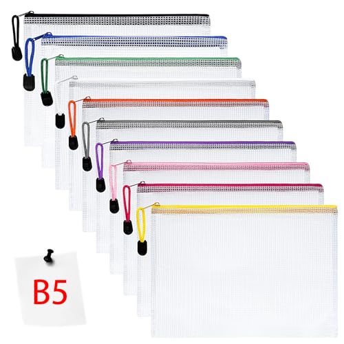 Vicloon Plastplånböcker, 10 st B5 zip-låspåsar, nät dokumentplånbok dokumentmappar plastfickor dragkedja fil plånbok för skola kontor läxor resa förvaringsväska (färg: dragkedja)
