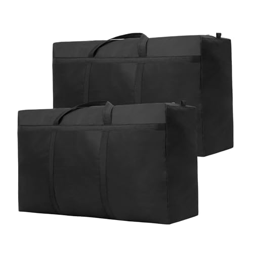 TSHAOUN 2-pack svarta förvaringsväskor 90 L stora förstärkta klädförvaringsväskor, vattentäta flyttväskor, förvaringsväska under sängen med dragkedja för täcke, filtar, tvätt, hemflytt, 80 × 45 × 25