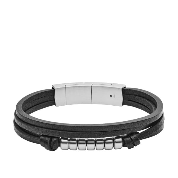 Fossil armband Multi-Strand Silver-Tone Steel and Black Leather Bracelet JF03322040