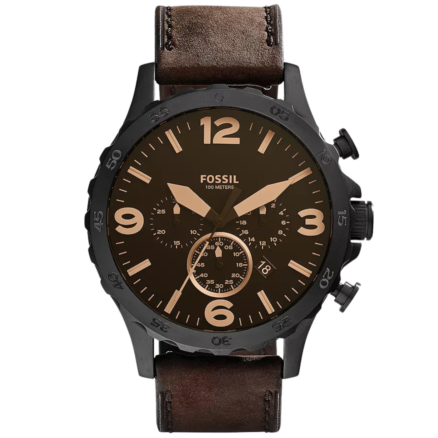 Fossil Nate JR1487 | Herrklocka med Brun urtavla | 50 mm | Quartz | Läder | Armbandsur