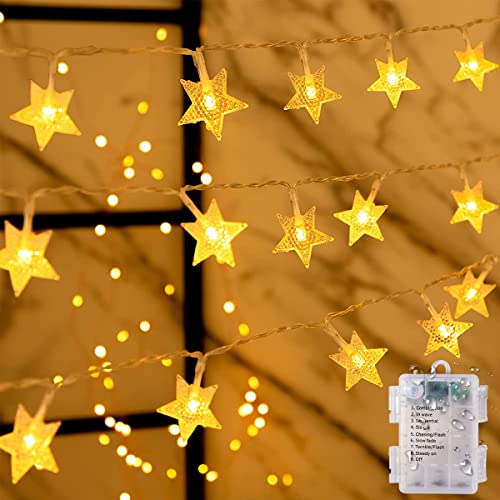 GARITE Stjärnljusslingor batteridrivna, 6 m/20 fot 40 LED-lampor batteridrivna ljusslingor, 8 lägen ljusslingor för sovrum, bröllop, födelsedagsfest, inomhus och utomhus