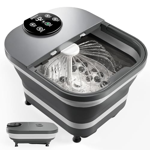 COMFIER 2026 Uppvärmt hopfällbart fotbad med dusch och temperaturkontroll, 30 Shiatsu massagebollar, automatisk massage, stänkskydd, gåva för kvinnor och män