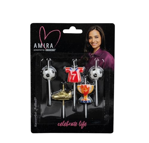 DECOCINO möter AMIRA – ljusset fotboll 5 delar – perfekt som dekoration för dina muffins, tårtor eller kakor, födelsedag, födelsedagstårta, fotboll, boll, grind, dekoration, fest
