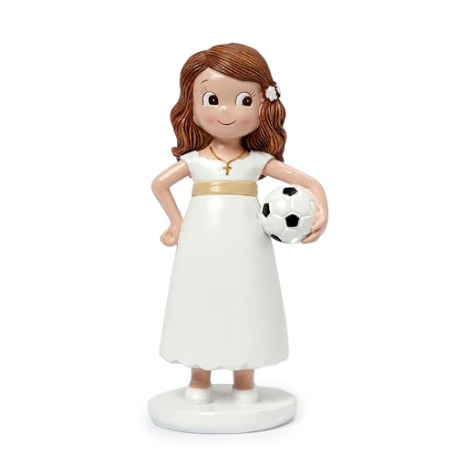 Mopec Y73 Kommunion flicka med fotboll boll tårta figur 13 cm, flerfärgad, normal
