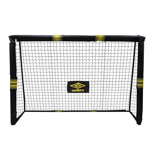 Umbro Fotbollsmål – fotbollsmål 240 x 160 x 8 cm – fotbollsmål för trädgård barn och vuxna – fotboll, träningstillbehör för inomhus- och utomhusbruk – metall – svart/gul