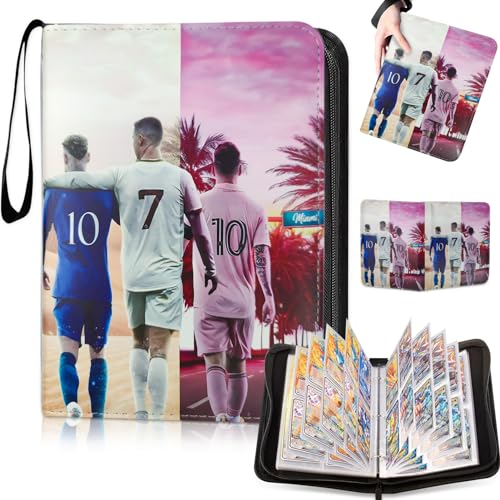 Samlaralbum fotbollskort, 50 sidor, för 400 fotbollskort, mapp, fotboll samlarkortalbum i högkvalitativt vattentätt PU-läder, samlarhäfte, gåva (A)