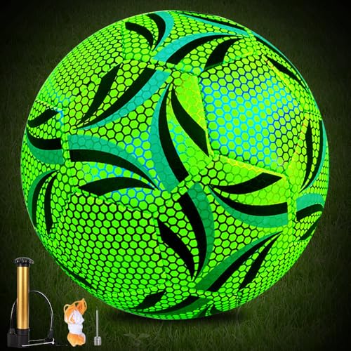 PLLYPE Lysande fotboll storlek 5, reflekterande fotboll, fluorescerande fotboll utomhus, lysande i mörkret med pump, läder för fotbollsträning, nattspel inomhus och utomhus
