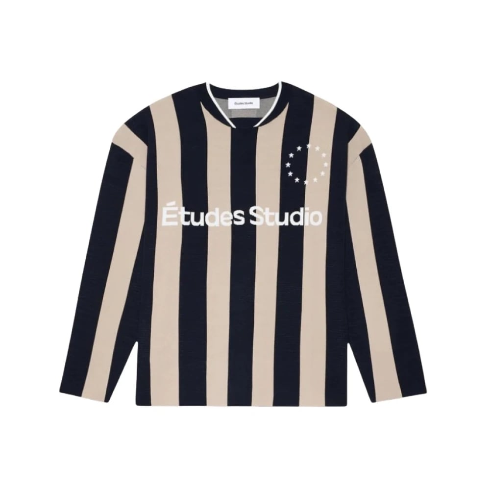 Études, Toppar , Herr, M, Läder, Randig Långärmad Fotboll T-shirt