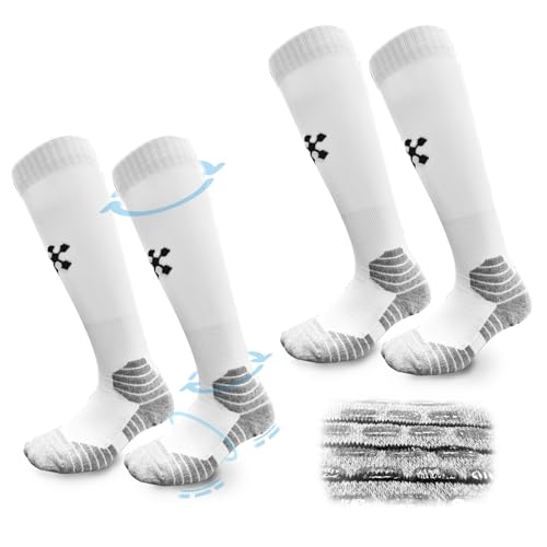 FIBOGOUP 2 par greppstrumpor fotboll | Fotbollsstrumpor för vuxna och barn | Universell storlek | flexibla andningsbara sportstrumpor vit L, Vitt, 38.5-44.5 EU
