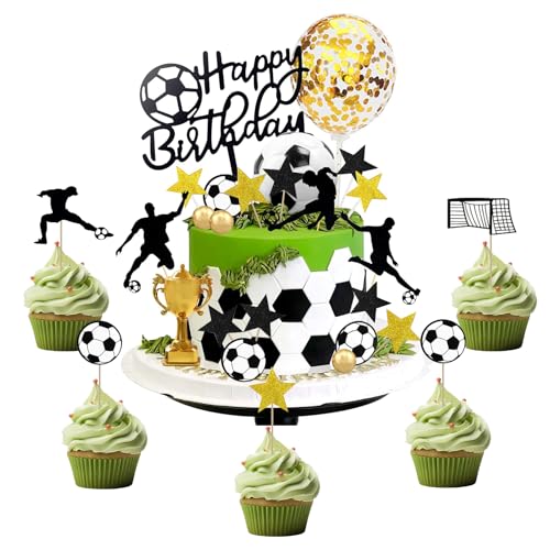 Tårtdekoration fotboll, cupcake topper fotboll, cake topper fotbollsfest, dekorationsset för män, pojkar, sporttema, tillbehör till födelsedagskalas