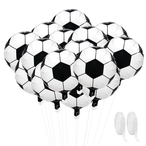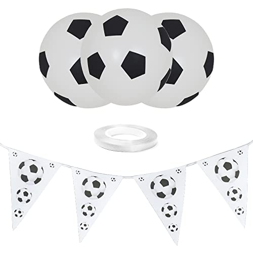 18 stycken dekorativa ballonger för fotboll, 2 bandrullar, dekorativa ballonger med fotbollstema, folieballonger, dekorativa tillbehör