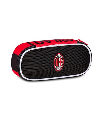 Seven ROUND PLUS Skolpennhållare - A.C. MILAN Fotboll -PATH OF VICTORY, svart röd - Monozip skolpennfodral med inre organisatör, elastiska öglor - skolryggsäck tillbehör - pennfodral för barn,