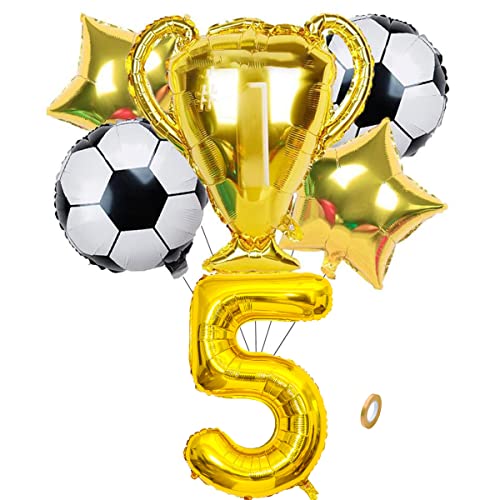 Jxuzh Fotboll Födelsedag Party Dekoration Tillbehör - Ballonger för Pojkar 5. Födelsedag - Stjärna och Gyllene Ballonger