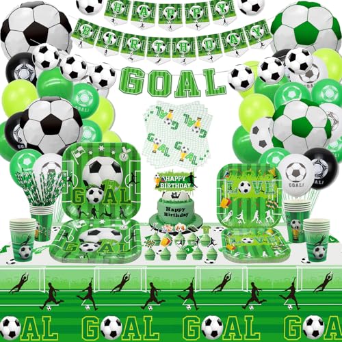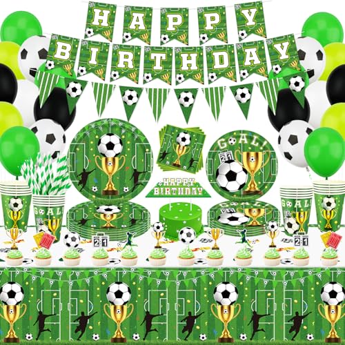 165-pack fotbollsfest dekorationer fotboll party tillbehör set sport tema födelsedagstillbehör innehåller tallrikar servetter ballonger banderoll bordsduk serverad 20