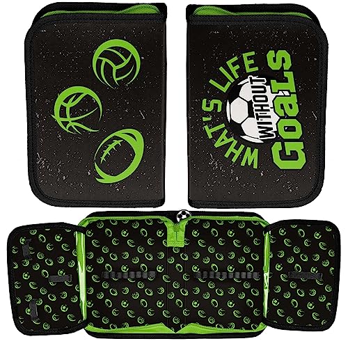 Seven Milan Pennhållare, svart, ovalt pennfodral för pennor, pennor och tillbehör, gymnasiet och gymnasiet, pojke fotboll, Svart, Modern