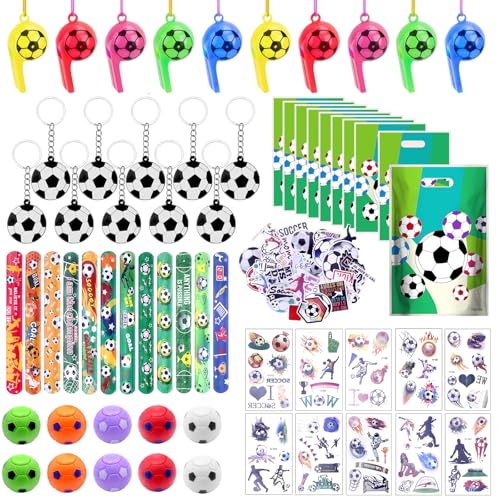 HOVIBU 112 st födelsedagsfest tillbehör, barngåvor, födelsedag pinata fylld med fotboll nyckelring, visselpipa, presentpåse, fotboll gyro