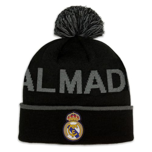 Icon Sports officiellt licensierad Real Madrid pom-mössa – premium mjuk stickad vintermössa för Real Madrid-fans, varm fotboll utrustning