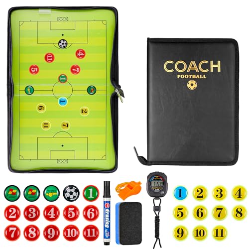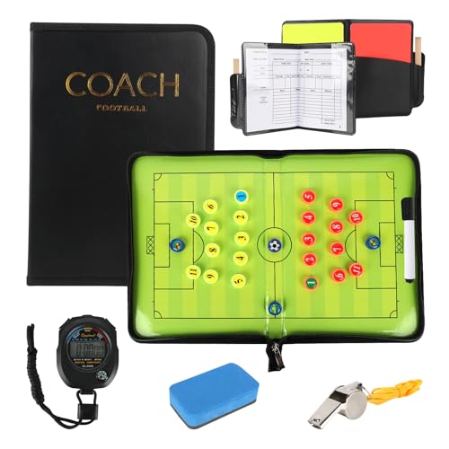 LUFEIS Fotbolls taktiktavla, tränarväska, bärbar träningsväska, fotboll, med rött gult kort, magneter, domare visselpipa, timer och suddgummi, för taktiska instruktioner och träning