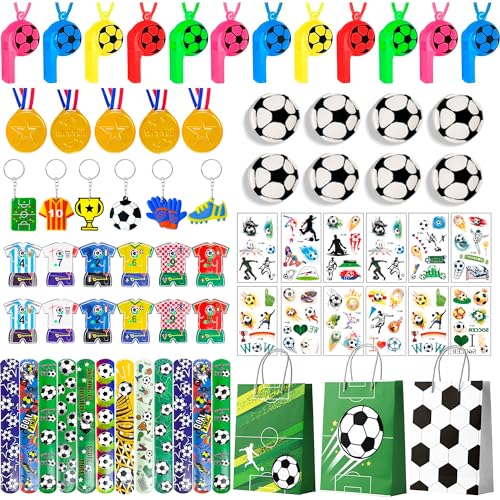 Fotboll presentpåsar pojkar, 96 st fotboll party presentset, fotboll present fest visselpipa nyckelring medaljer etcfödelsedag gåvor för födelsedag dekoration
