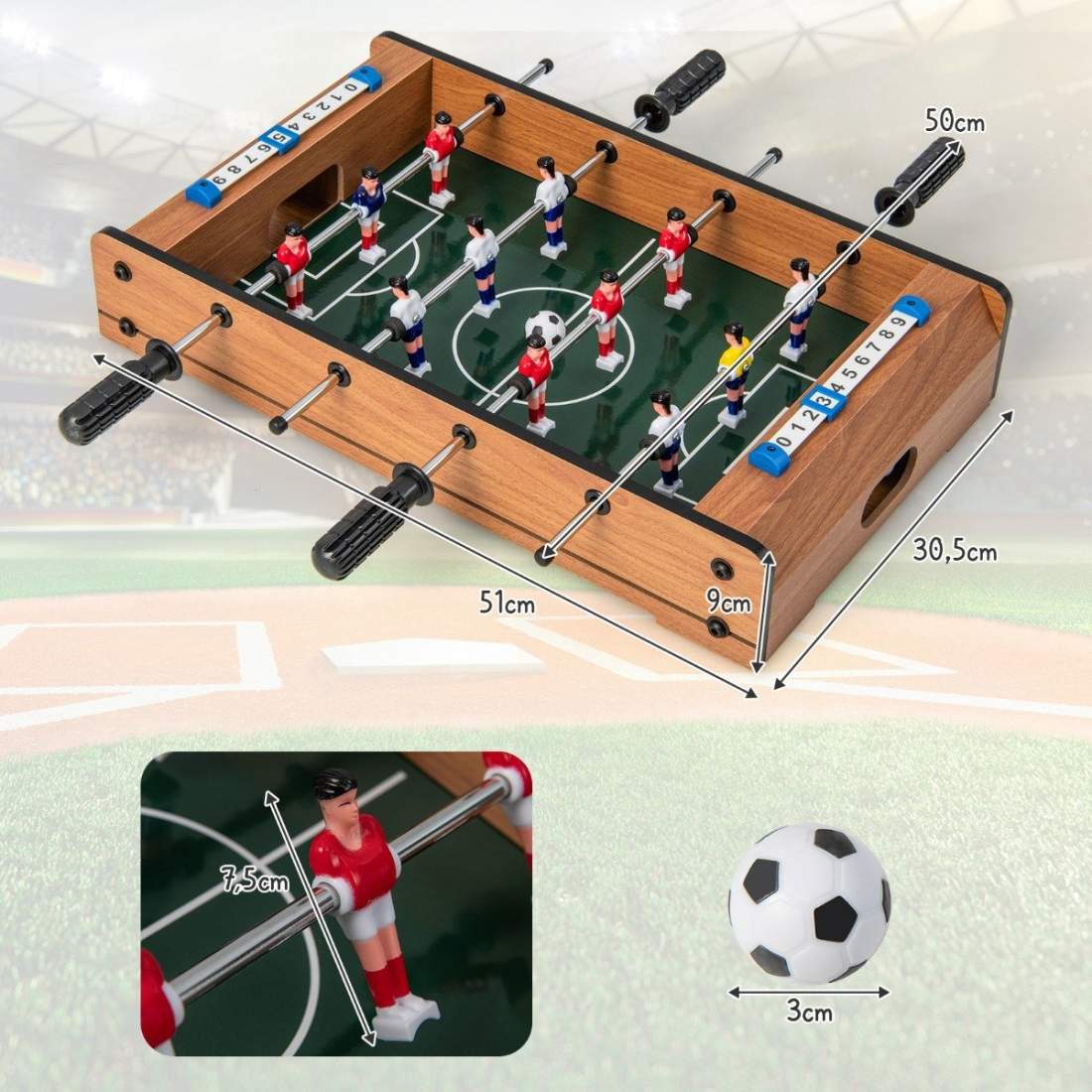 Minifotbollsbord för 2 spelare, platsbesparande fotbollsbord med robust handtag, 51 x 30,5 x 9 cm, natur
