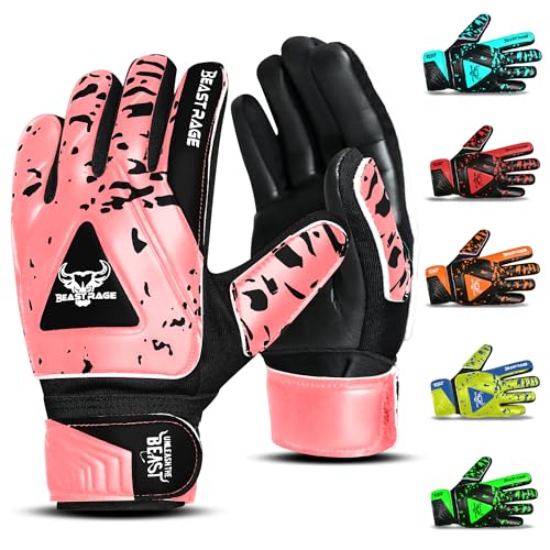 BEAST RAGE Fotboll målvaktshandskar för barn, fotbollshandskar för barn, fotbollshandskar för barn (rosa, storlek 7 (S/M))