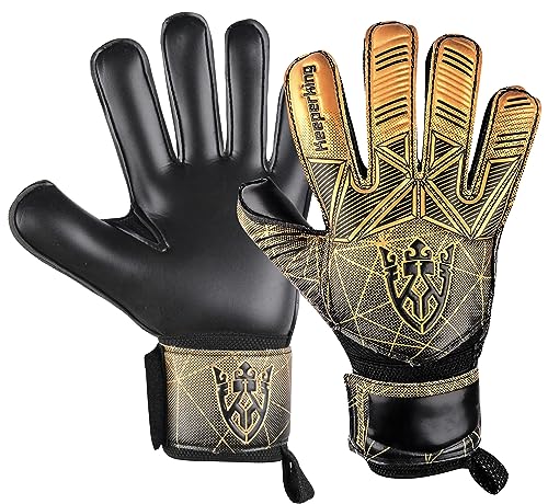 Keeperking Målvaktshandskar för vuxna, barn och ungdomar, med och utan fingerskydd, fotbollshandskar med avtagbara fingerskydd på 4 mm, unisex (5, guld – avtagbara fingerskydd)