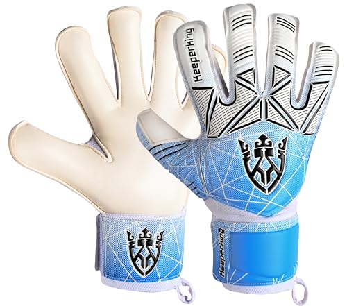 Keeperking Målvaktshandskar för vuxna, barn och ungdomar, med och utan fingerskydd, fotbollshandskar med avtagbara fingerskydd på 4 mm, unisex (7, cyanblå – avtagbara fingerskydd)