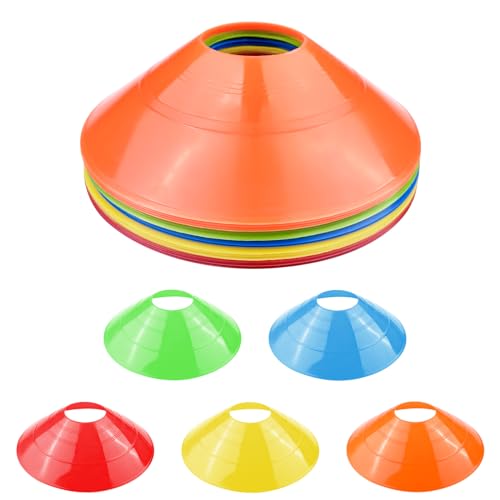 Fousenuk Förpackning med 20 fotbollskottar, runda markörkoner med stativ, sportkoner, markeringsskivor, fotbollskoner för hockey, skridskoåkning, handboll, koordinationsträning (5 färger)